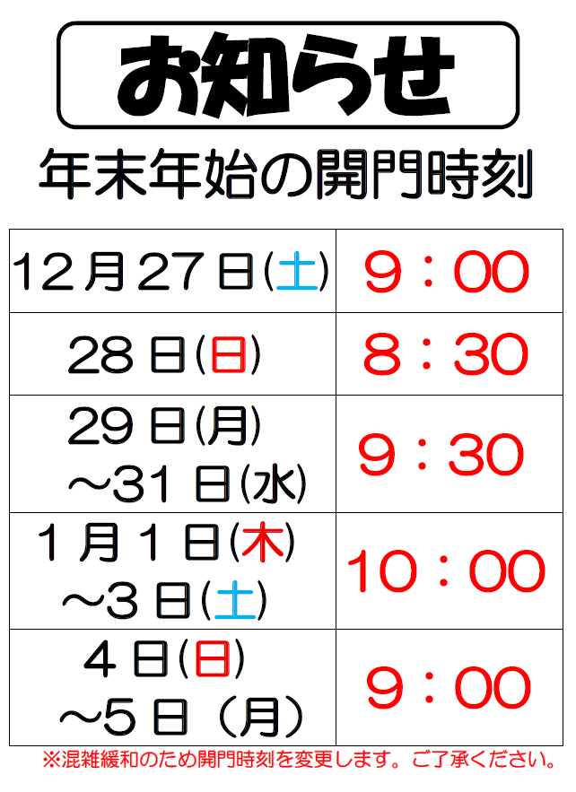 有馬記念当日は8:30開門、第15回笠松競馬開催日の12月29~31日は9:30開門となります。