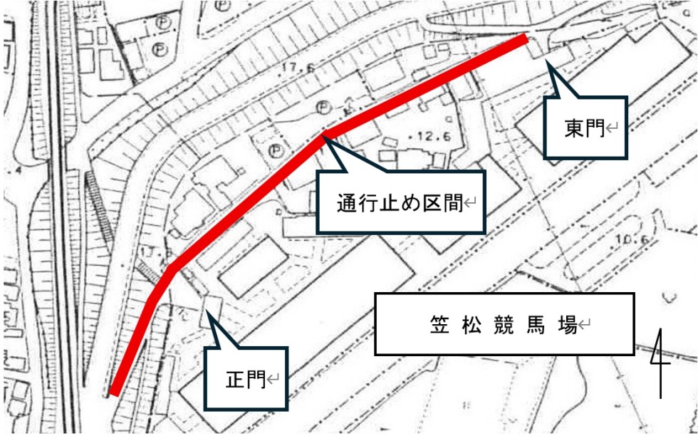 年末開催時等の正門付近の来場者、歩行者の安全確保を目的に、下記のとおり正門前の道路を