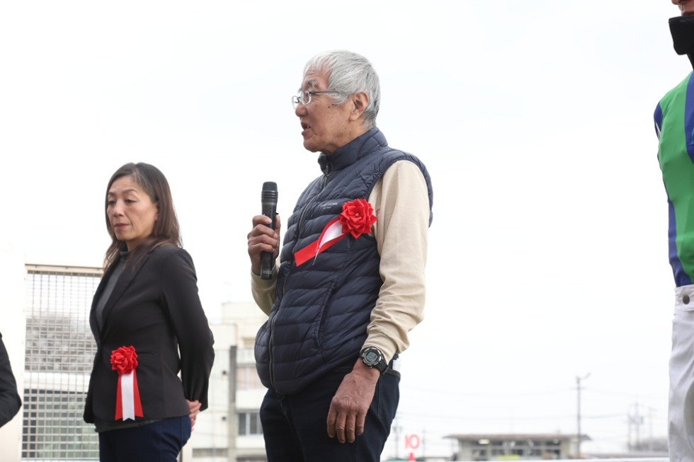 (吉田氏)所有馬の応援いつもありがとうございます。あと笠松競馬もこれからどんどん皆さん応援していただいて、どんどん売上を上げていただくと良い馬がもっと入ってくると思ってますので、賞金を上げてください。よろしくお願いします。