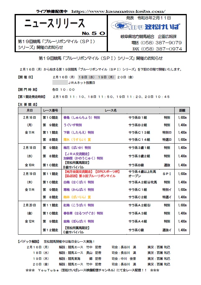 ニュースリリース(第19回競馬「ブルーリボンマイル(SPⅠ)シリーズ」開催のお知らせ)