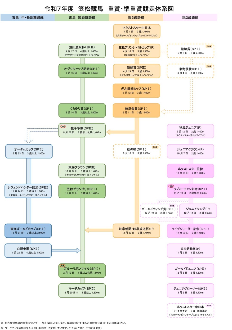 令和7年度笠松競馬重賞・準重賞競走体系図 ※変更あり