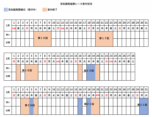 協賛レース受付状況
